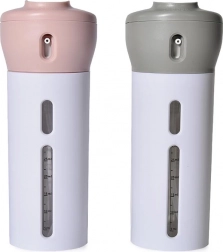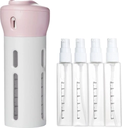Hold din flydende kosmetik samlet og overskuelig ét sted. Organizeren rummer fire genopfyldelige flasker med dispensere, ideelle til shampoo, brusegel, ansigtslotion eller cremer. Kompakte mål og holdbart plastdesign sikrer behagelige rejser uden unødigt rod.