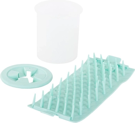 Den silikonebaserede pote-renser er en smart løsning til den daglige hygiejne for hunde og katte. De bløde silikoneknopper fjerner skånsomt mudder, sand og støv uden at irritere de følsomme trædepuder. Efter brug hælder du blot vandet ud, tager indsatsen ud og skyller under rindende vand.