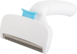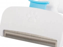 Hold din pelsven i topform. Denne afpelserbørste fjerner effektivt død underuld og løse hår, hvilket reducerer fældning med op til 90 %. Tænderne i rustfrit stål trænger skånsomt ind i pelsen uden at klippe eller beskadige den. Takket være den selvrensende knap frigiver du de opsamlede hår fra hovedet med ét tryk.