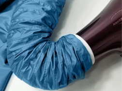 En tæt lukkende jakke med tilførsel af varm luft fra hårtørreren forkorter tørretiden og minimerer rod i hjemmet.