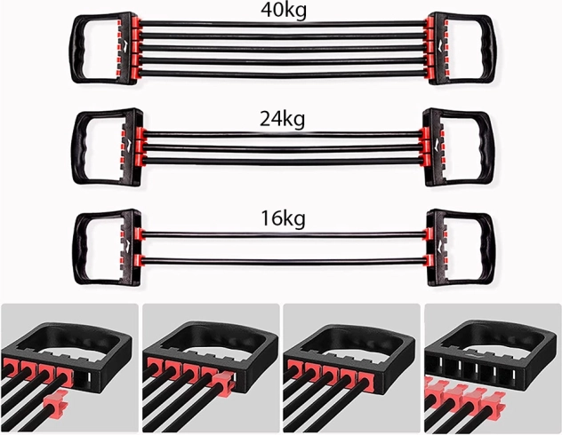 Alsidig ekspander med 5 aftagelige modstandsbånd og ergonomiske håndtag til effektiv styrketræning, udstrækning og rehabilitering. Tilbyder justerbar modstand, nem brug og lang levetid takket være materialer af høj kvalitet.