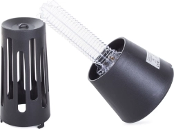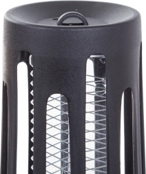 Blåviolet UV-lys tiltrækker myg og fluer, som derefter neutraliseres på det strømførende gitter. Hurtigt, effektivt og uden kemikalier.