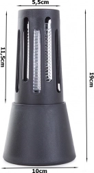 Takket være USB-strømforsyning tilsluttes den nemt til en bærbar computer, powerbank eller adapter. Konstruktionen med aftagelig øverste del gør rengøringen hurtig; i pakken medfølger også en praktisk børste. Den stabile koniske base sikrer sikker placering uden montering.