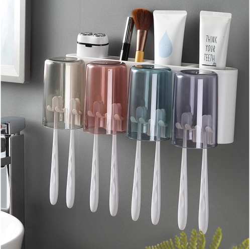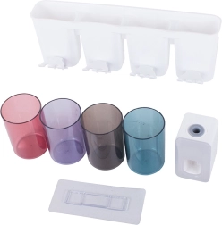 Skab orden på badeværelset med en smart organizer, der kombinerer tandbørsteholder, tandpastadispenser og opbevaringsrum til hverdagens behov. Medfølger 4 plastkopper (300 ml) for hele familiens bekvemmelighed. Installationen er hurtig og ren – sæt den blot fast på væggen med en kraftig sugekop, helt uden boring.