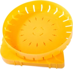 Med arbejdsmålene 26 cm i diameter og en samlet højde på 7 cm, tilbyder denne arrangør en moderne løsning til opbevaringsbehov med mulighed for at købe den i to farver: blå og gul.