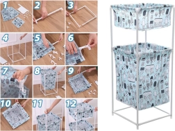 Vasketøjskurven er designet til maksimal funktionalitet og praktisk anvendelse. Takket være dens universelle konstruktion kan den anvendes på to forskellige måder: med en øvre hylde eller som en stor kurv. Den er lavet af kvalitetsplast og vandafvisende stof, hvilket garanterer lang levetid og nem vedligeholdelse.