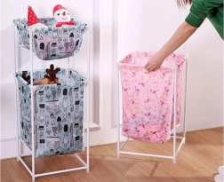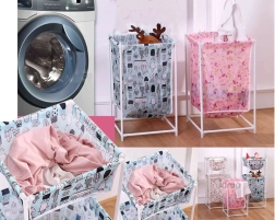 Vasketøjskurven er udstyret med en dobbelt hylde, der muliggør effektiv sortering af tøj og øger dens praktiske anvendelse.