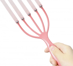 Kombinationen af plast og metal sikrer lang levetid og pålidelighed. Massageapparatet er udstyret med fem fleksible arme, som ender i metalkugler. Denne konstruktion muliggør nem påføring af plejeprodukter på hovedbunden.