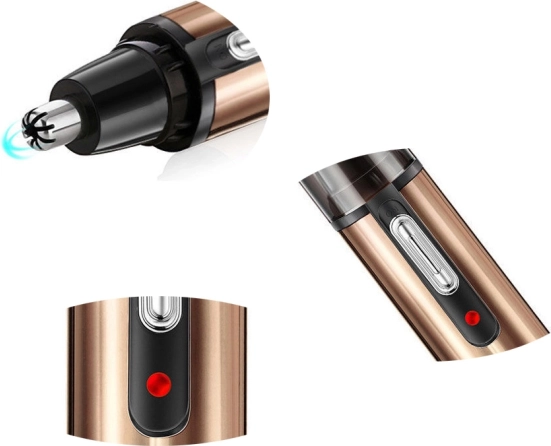 Roterende rustfrie stålblade og et afrundet hoved muliggør hurtig og sikker fjernelse af hår i næse og ører uden at trække.