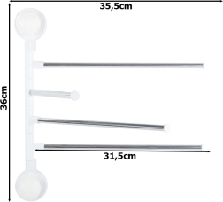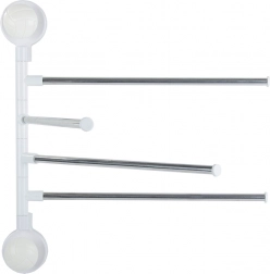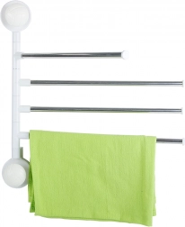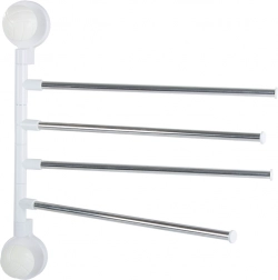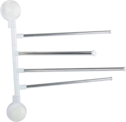 Den praktiske vægmonterede håndklædeholder med fire udklappelige arme sørger for, at dine håndklæder altid er inden for rækkevidde og tørrer hurtigt. Hver arm kan drejes separat, så luften kan cirkulere mellem håndklæderne, og der undgås unødig rod. Den minimalistiske kombination af metalstænger og hvid plastbase passer perfekt i både moderne og klassiske badeværelser.
