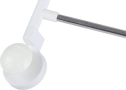 Metalstænger og en solid plastbase i hvid passer til de fleste badeværelser og er lette at rengøre.