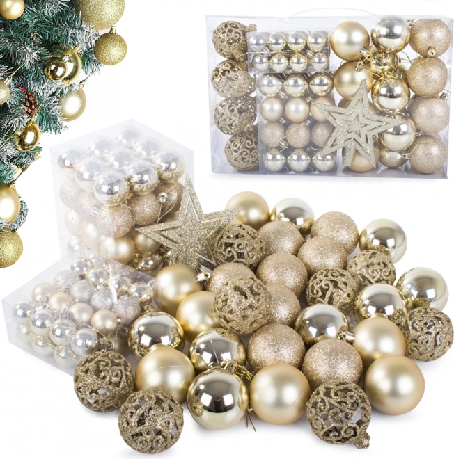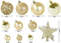 Dette sæt julepynt kombinerer elegancen af gyldne toner med de praktiske egenskaber ved uknuselig plastpynt. Det passer til enhver, der ønsker at tilføje deres juletræ et strejf af luksus uden at bekymre sig om sikkerheden. Plastpynt er fantastisk til husholdninger med børn og kæledyr, da de er lette og ikke går i stykker ved fald.