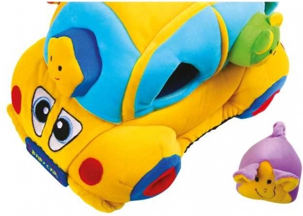 Opdag den sjove tekstilbil med et venligt ansigt, designet som sikkert indsætningslegetøj til tumlinger. Den bløde krop i plys er behagelig at røre ved, og de enkelte former rasler, piver eller klingrer let, når man håndterer dem. Et af elementerne har spejlfolie, som inviterer barnet til at udforske og styrker den visuelle sans.