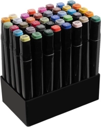 Dobbeltspidsede markere giver dig frihed til både at skabe og arbejde effektivt: den runde spids er ideel til skrivning, skitser og konturer, mens den skrå spids hurtigt fremhæver nøgleafsnit eller udfylder flader. Med en palette på 40 markante nuancer matcher du let noter, farvekodning og kunstneriske projekter.