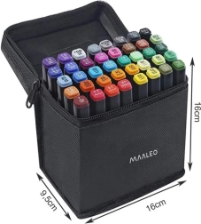 Det holdbare tekstiletui holder alle 40 markere overskueligt og sikkert på plads. Kompakte mål 16 × 16 × 9,5 cm gør opbevaring og rejser nemmere.