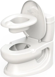 Realistisk potte i toiletdesign, der hjælper børn med at gå fra ble til toilet på en sjov og motiverende måde. Den tilbyder skyllelyd, holder til toiletrulle, aftagelig skål for nem rengøring og skridsikker bund for sikker brug.