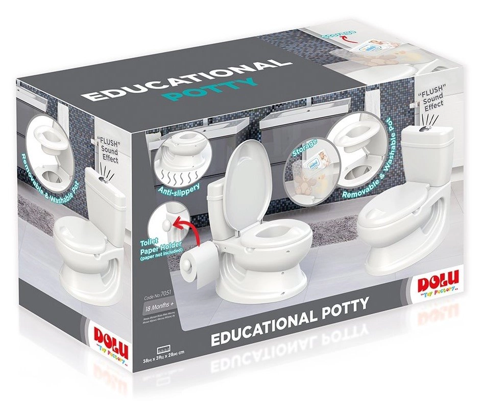 Denne DOLU børnepotte efterligner et rigtigt toilet, så dit barn kan føle sig trygt og komfortabelt under pottetræningen. Den praktiske konstruktion er nem at vedligeholde og giver stabilitet og komfort i daglig brug.