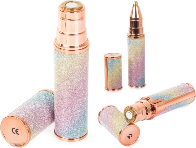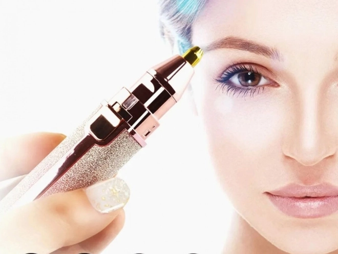 Elegant øjenbrynsepilator er ideel til daglig brug. Det diskrete design, der minder om kosmetiske produkter, gør det muligt at nemt bære rundt i håndtasken. Fjerner effektivt og sikkert uønskede hår, og integreret LED-belysning sikrer præcision selv i svagt lys.
