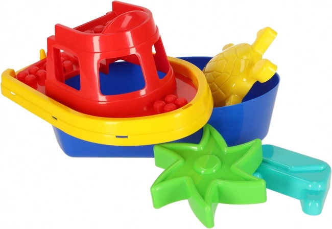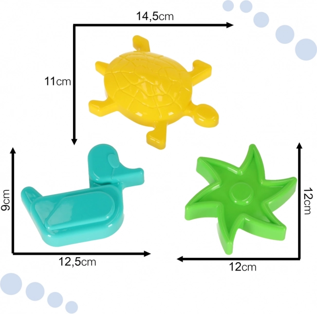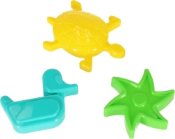 Nyd kreativ leg i sand og vand. Sættet indeholder en multifunktionel båd, som nemt kan skilles ad i tre dele og bruges som stor form eller sættes i vandet og lade den flyde. Tre stærkt farvede forme – stjerne, and og skildpadde – hjælper børn med at lave flotte figurer og udvikle fantasi og finmotorik.
