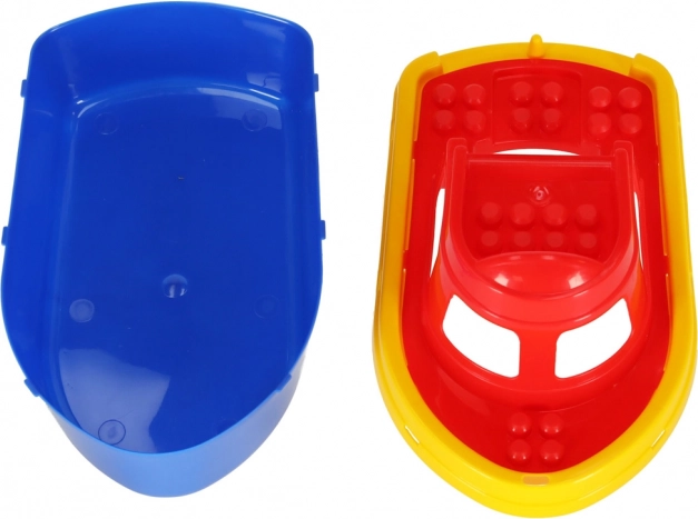 Kvalitetsplast tåler både vand og sand. Båden fungerer som opbevaringsplads til formene, så du har alt ved hånden, og intet bliver væk.