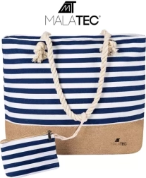 Nyd en dag ved vandet eller i byen med en alsidig taske, der rummer alt fra håndklæde og kosmetik til bøger og madpakke. Bunden i jute-look og blå-hvide striber understreger den trendige maritime stil, som passer til strand, picnic og hverdagsbrug.