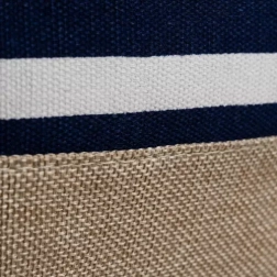- Maritimt, blå-hvide striber, jute-look bund