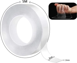 Den dobbeltsidede, gennemsigtige tape er meget nem at påføre. Rens blot forsigtigt overfladen, hvor den skal anvendes, og pres tapen fast. Den kan nemt fjernes og bruges igen efter vask uden at efterlade rester. Brug den til ophængning af billeder, forskelligt køkkengrej samt til fastgørelse af kabler, lister eller tæpper.