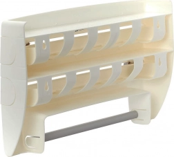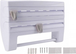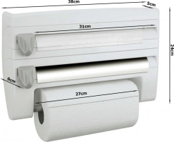 Organizeren er beregnet til standardbredder på ruller (folie op til 31 cm, køkkenrulle op til 27 cm og ca. 10 cm i diameter). Udskiftning af ruller tager kun et øjeblik – vip frontdækslet ned, indsæt en ny rulle og luk. I pakken finder du alt nødvendigt monteringsudstyr til vægmontering.