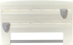 Den smarte 4 i 1 køkkenorganizer sparer både plads og tid: to dispensere til husholdningsfilm og alufolie, en holder til køkkenrulle og en praktisk krydderihylde holder alting overskueligt samlet. Skarpe, men sikkert skjulte skæreblade giver et rent, lige snit uden floss og unødigt spild.