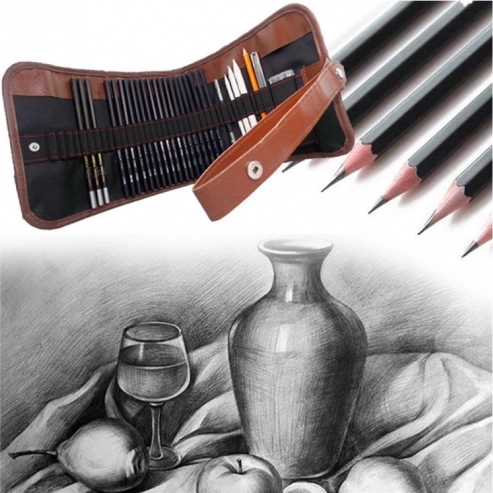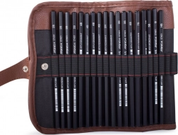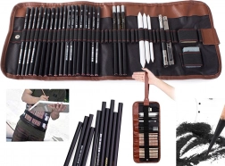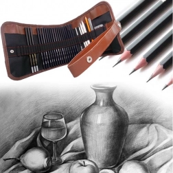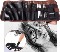 Dette professionelt sammensatte sæt tilbyder et bredt udvalg af blyanthårdheder fra 8B til 2H samt kvalitets trækul i tre hårdhedsgrader. Med det rige udvalg af værktøjer skaber du nemt markante skygger, fine skraveringer og skarpe konturer. Grafit blendes let og gør det muligt hurtigt at udfylde flader, mens hårdere blyanter sikrer præcise tekniske linjer.