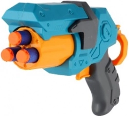 Pakken indeholder alt, hvad der skal til for at lege: 1× pistol og 3× skumkugle. Skumpilene er bløde og sikre til leg både indendørs og udendørs. Takket være det ergonomiske håndgreb ligger pistolen godt i hånden, og børn vil hurtigt komme til at holde af den.