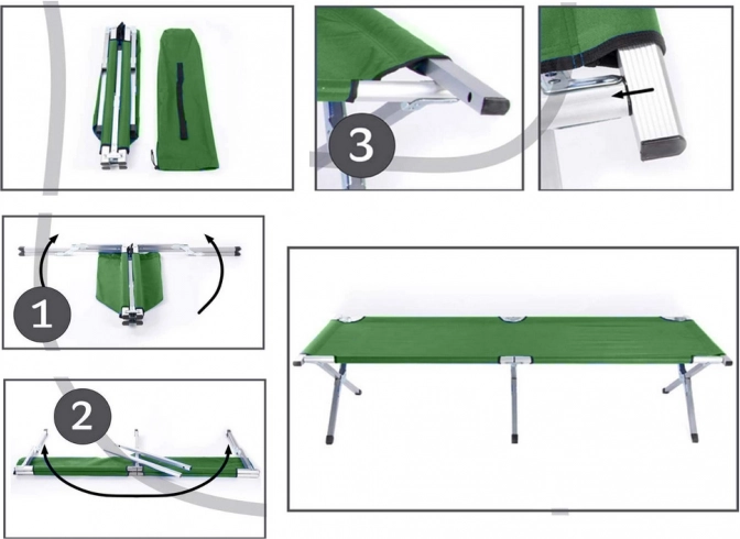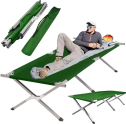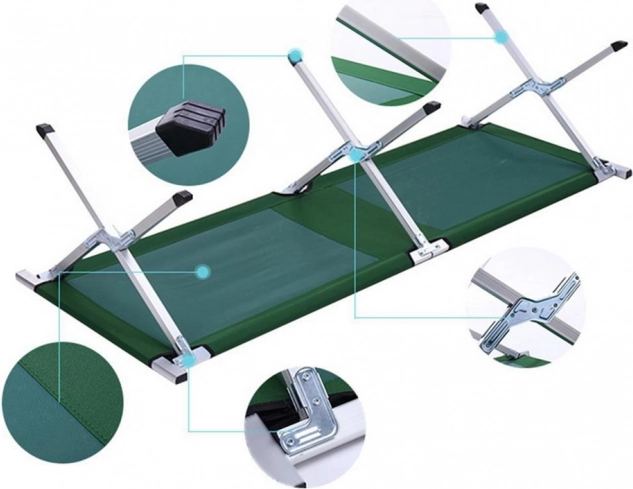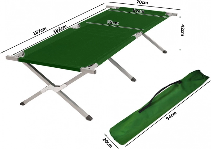 Nyd komfort på farten. Denne grønne sammenklappelige feltseng kombinerer en stabil metalramme med et slidstærkt polyesterbetræk, der er behageligt at røre ved og nemt at rengøre. Takket være den gennemtænkte X-ramme er sengen robust og pålidelig, samtidig med at den bevarer lav vægt og fremragende kompakthed.
