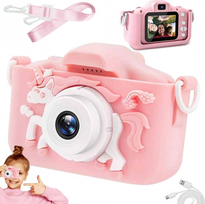 Kameraet er lavet af materialer af høj kvalitet, hvilket sikrer dets holdbarhed. Et siliciumetui med legende design beskytter enheden mod fald. Takket være letvægtsudførelsen er det velegnet til små hænder og kan let bæres i en snor.